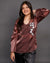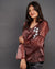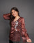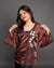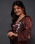 TUZK's Zeenat Floral Top is crafted from rich brown organza fabric, featuring beautiful hand-embroidered teal flowers. The combination of soft, flowing material and intricate craftsmanship gives this piece an air of refined elegance.